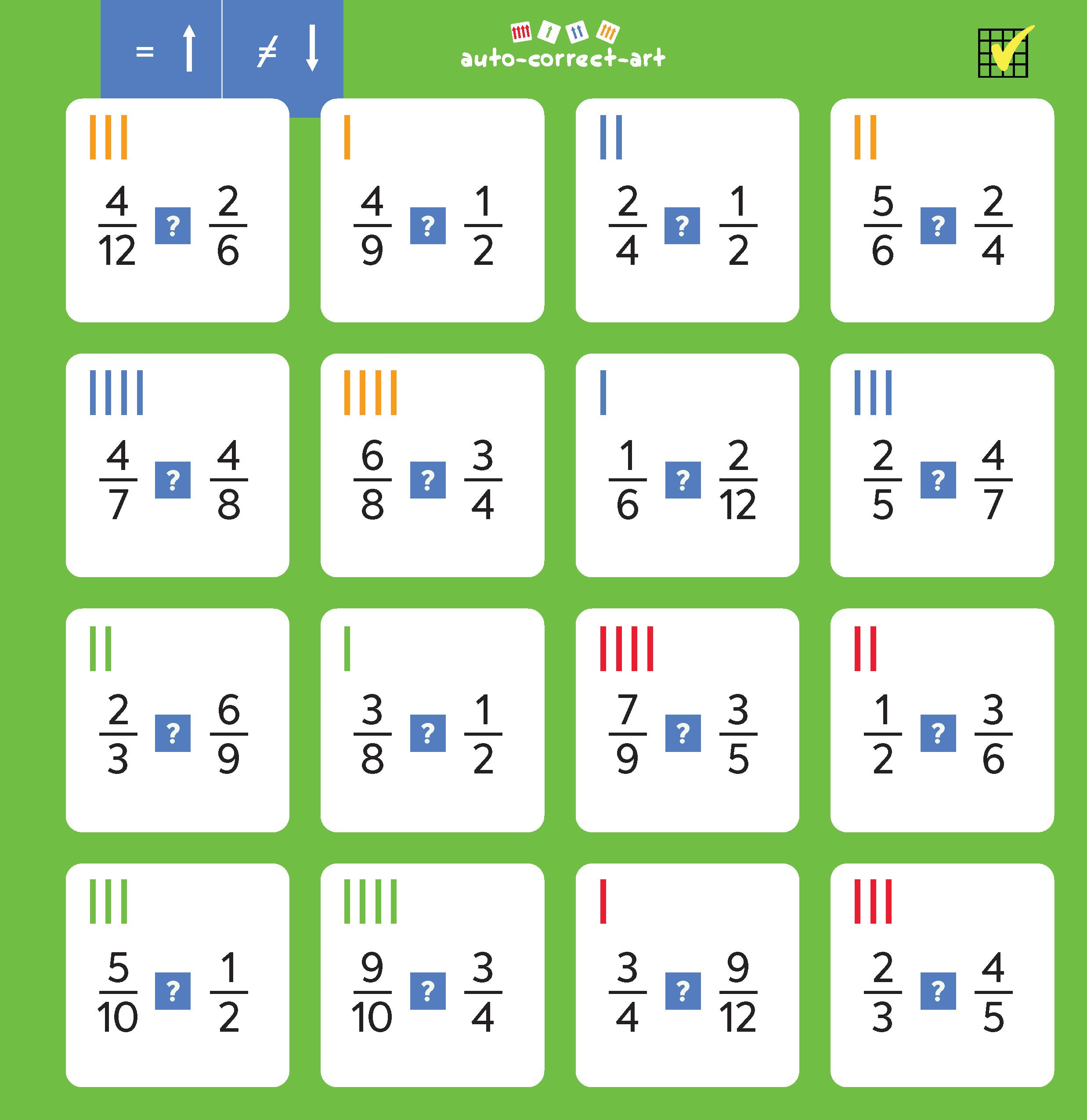 - sa facilité à placer des fractions en ordre croissant ou décroissant.