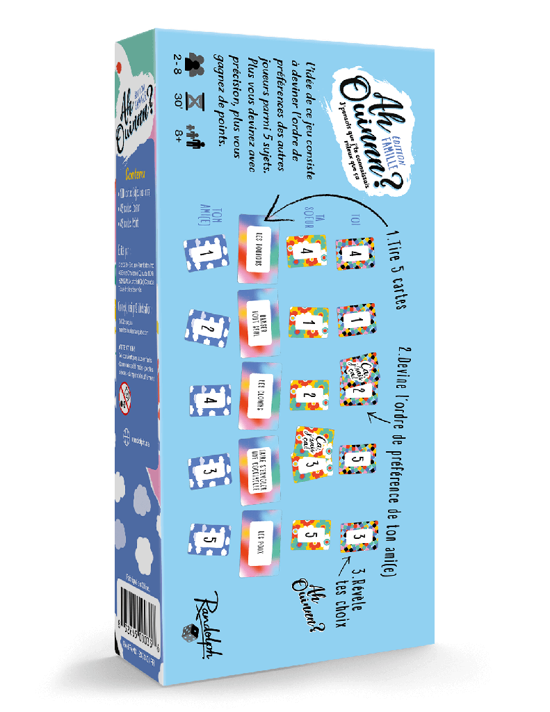 L’idée de Ah ouinnn? consiste à deviner l’ordre de préférence des autres joueurs parmi 5 sujets.