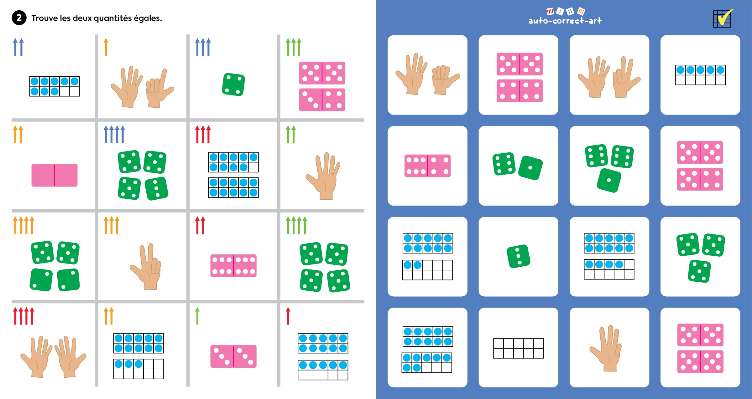 Dans cette série, l’enfant se familiarise avec les nombres et solidifie ses représentations mentales des quantités, sur lesquelles il pourra s’appuyer lorsque viendra le temps de faire des calculs et de résoudre des problèmes mathématiques.