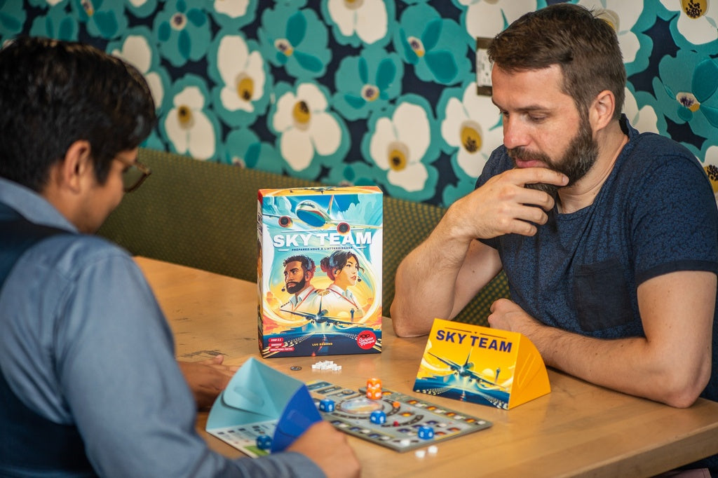 Dans Sky Team, vous incarnez un duo de pilotes dans le cockpit d’un avion de ligne. Votre objectif ? Réussir l’atterrissage, ensemble, sans dire un mot… et sans finir dans un champ.